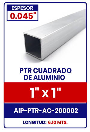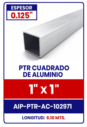 Podemos fabricar tubo cuadrado de aluminio ó PTR de aluminio en las medidas que requieras desde 1×1, 2×2, 1 1/2 x 1 1/2, 3×3, 4×4 etc., en espesores de 1/16″, 1/8″, 1/4″, 1/2″, 3/8″, 3/16″ ó en calibre 14, calibre 16, calibre 18 ó 20. Manejamos la Aleación mas común para este tipo de perfiles como la 6061 t6 ó 6063 t6 y t6, podemos aplicar acabado ya sea anodizado natural mate ( color natural), Negro Mate, Anodizado brillante, pintura blanca, pintura blanco hueso ó Beige.